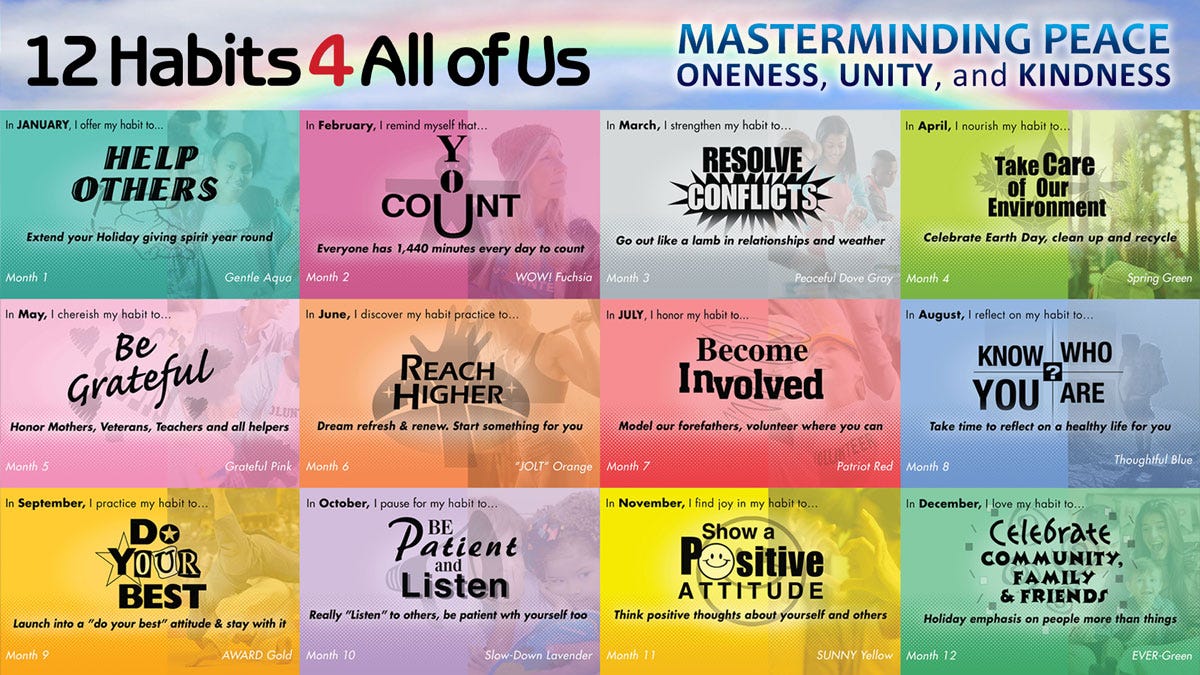The buck starts and stops with you and me and how we feel, act, and live our own daily lives. The 12 Habits 4 All of Us is a 12-month plan-of-action to turn the ideals of peace, and Oneness into the REAL DEAL.