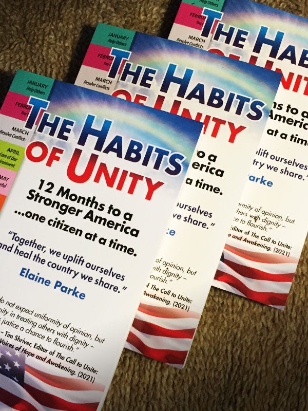 The Habits of Unity, helps us be better citizens by giving readers a simple, doable framework for practicing 12 good habits. Simultaneously, practicing these habits improves mental health. (Yes…good citizenship and mental wellness go hand in hand!)